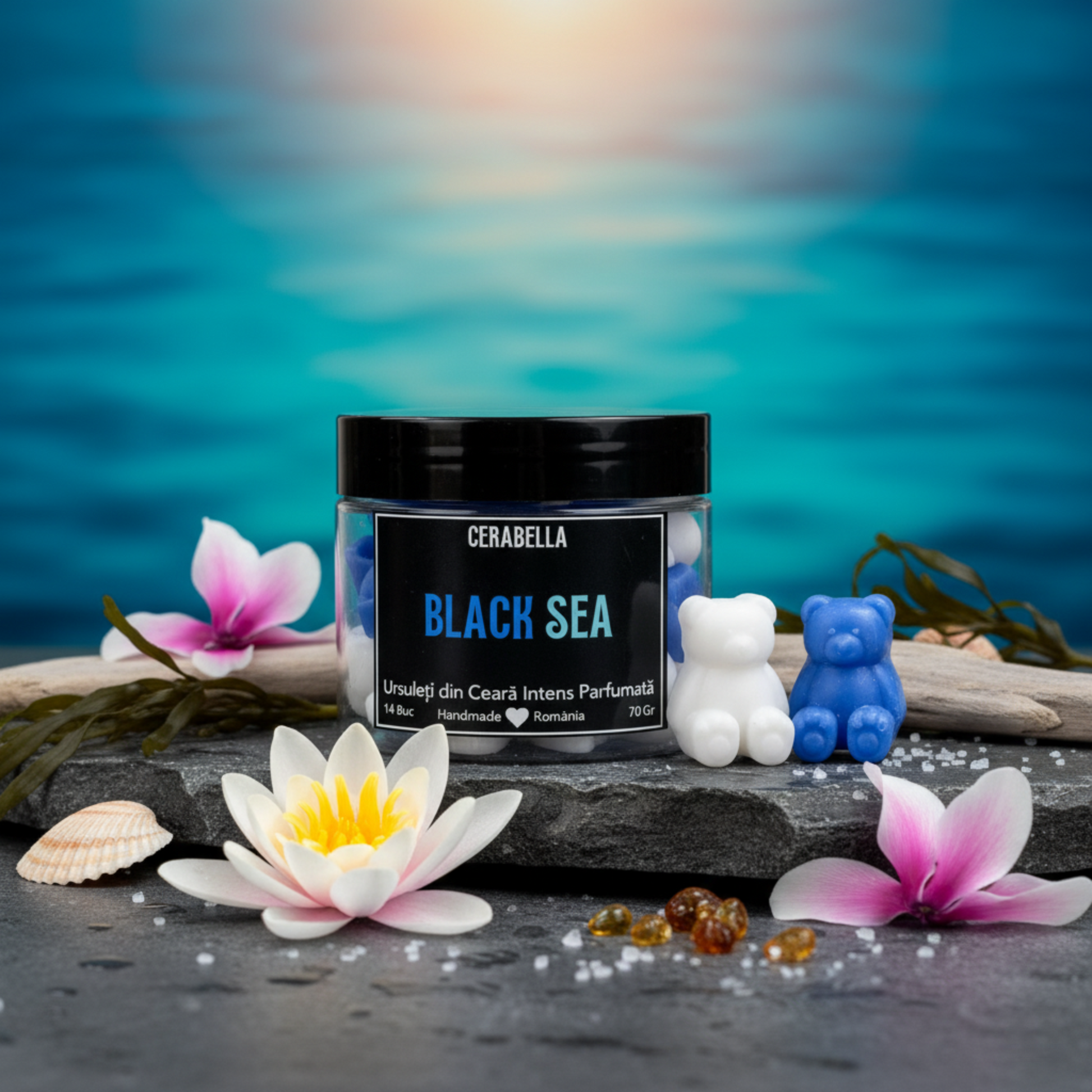 Marea Neagră. Un parfum ce surprinde prospețimea brizei marine și liniștea plimbărilor pe țărm. Debutul răcoros, cu note de ozon și alge marine, aduce senzația autentică a aerului sărat de mare. Inima florală, cu ciclamen și nufăr de apă, adaugă delicatețe și echilibru, amintind de valurile line și de lumina soarelui reflectată pe apă. Finalul cald, cu lemn de drift, ambră, patchouli și mosc, oferă stabilitate și profunzime – ca o îmbrățișare nostalgică a mării. Un parfum curat și revigorant, care te poartă cu gândul la frumusețea unică a Mării Negre.