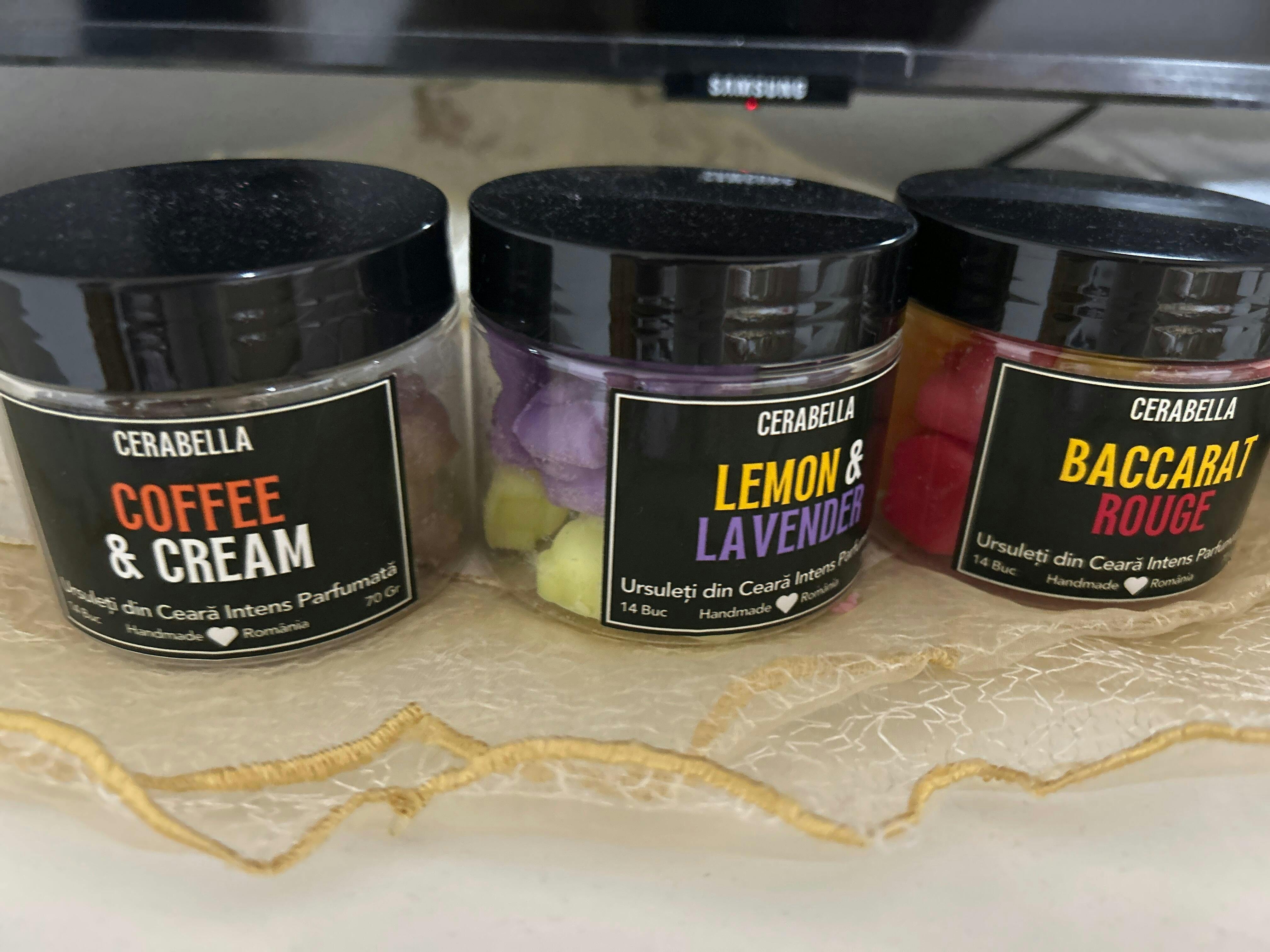 Îți sugerăm să începi cu un singur ursuleț de ceară; poți adăuga doi ursuleți pentru o acoperire mai eficientă și un parfum mai intens.