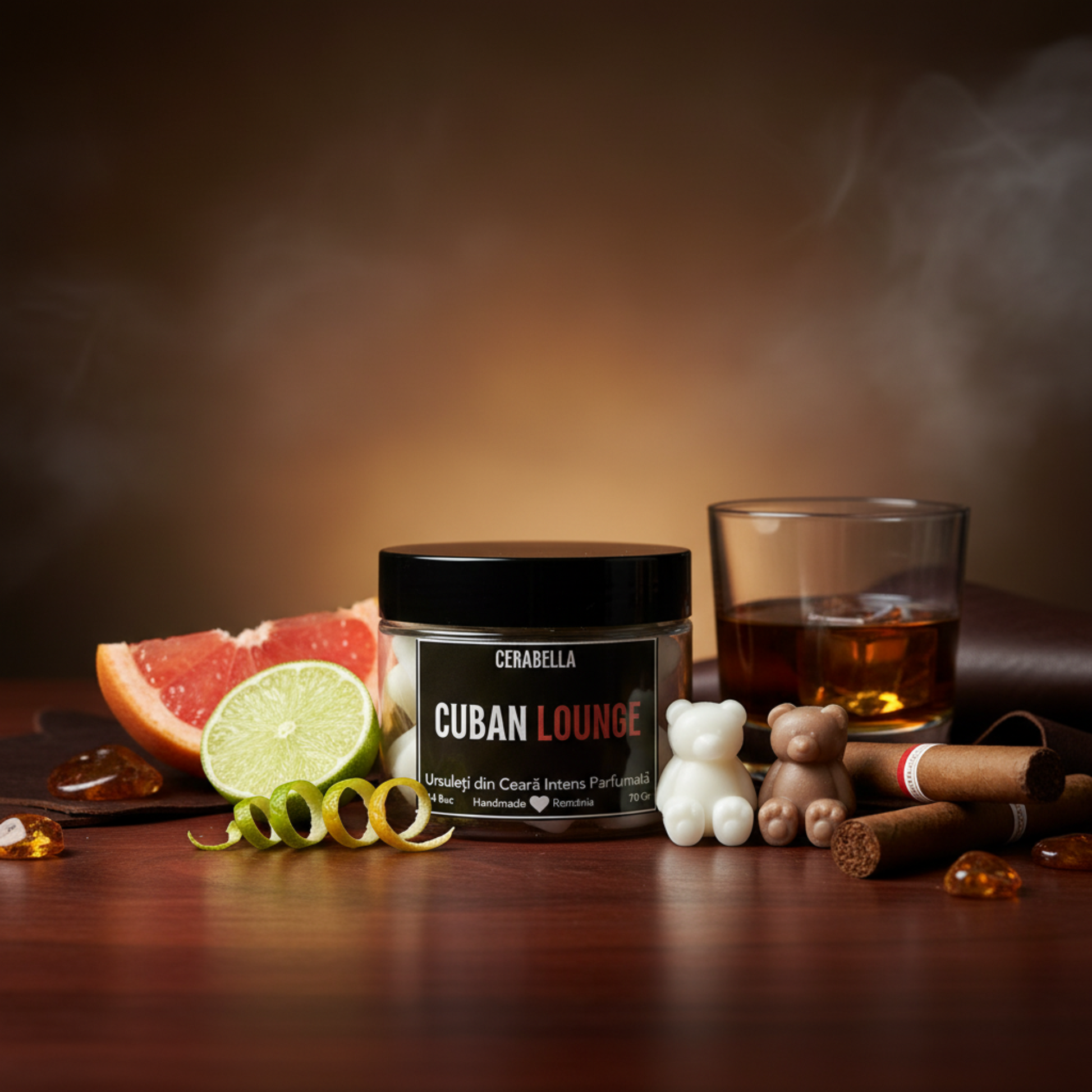 Lounge cubanez. Un parfum elegant și profund, inspirat de serile liniștite petrecute într-un lounge de trabucuri, cu un cocktail fin în mână și conversații care curg natural. Debutul este proaspăt și vibrant, cu note de rom, grapefruit, bergamotă și lime – o combinație care aduce un strop de rafinament exotic. Inima condimentată, cu cuișoare, patchouli și labdanum, adaugă căldură și mister. Finalul fumuriu, cu tutun, mușchi, piele și ambră, lasă o amprentă senzuală, intensă și memorabilă – perfectă pentru momentele în care vrei să te desprinzi de agitația cotidiană.