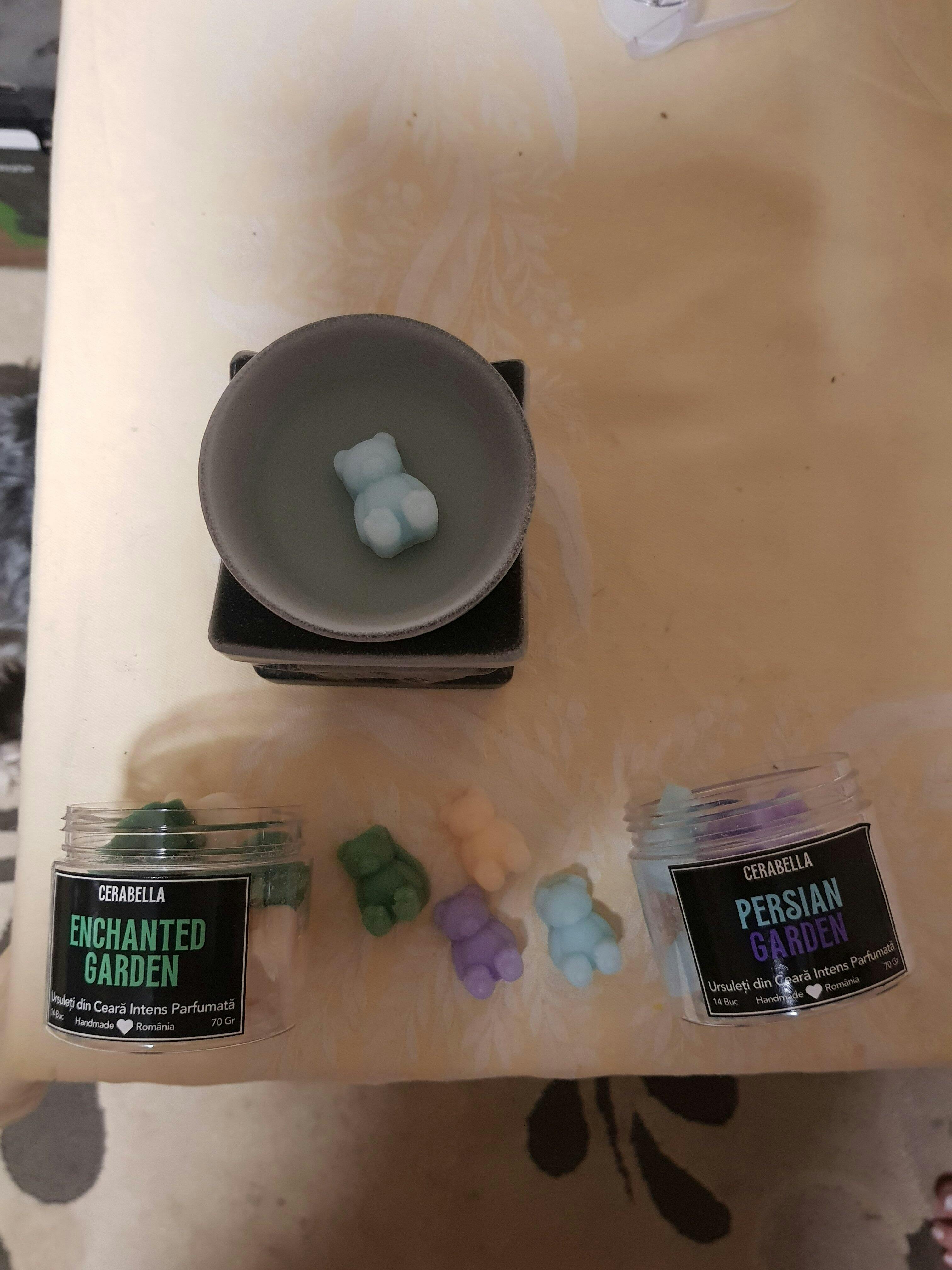 Îți sugerăm să începi cu un singur ursuleț de ceară; poți adăuga doi ursuleți pentru o acoperire mai eficientă și un parfum mai intens.