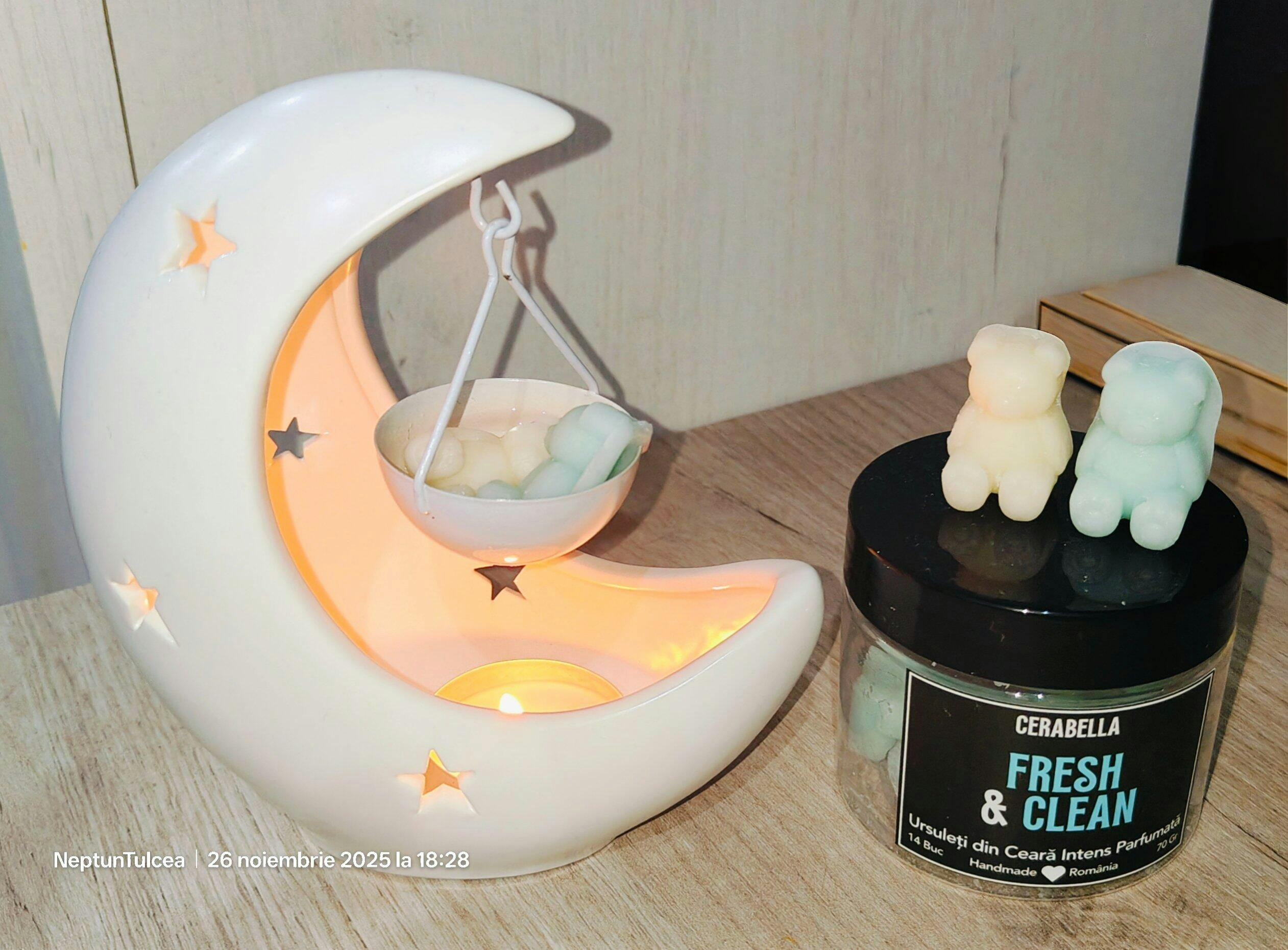 Îți sugerăm să începi cu un singur ursuleț de ceară; poți adăuga doi ursuleți pentru o acoperire mai eficientă și un parfum mai intens.