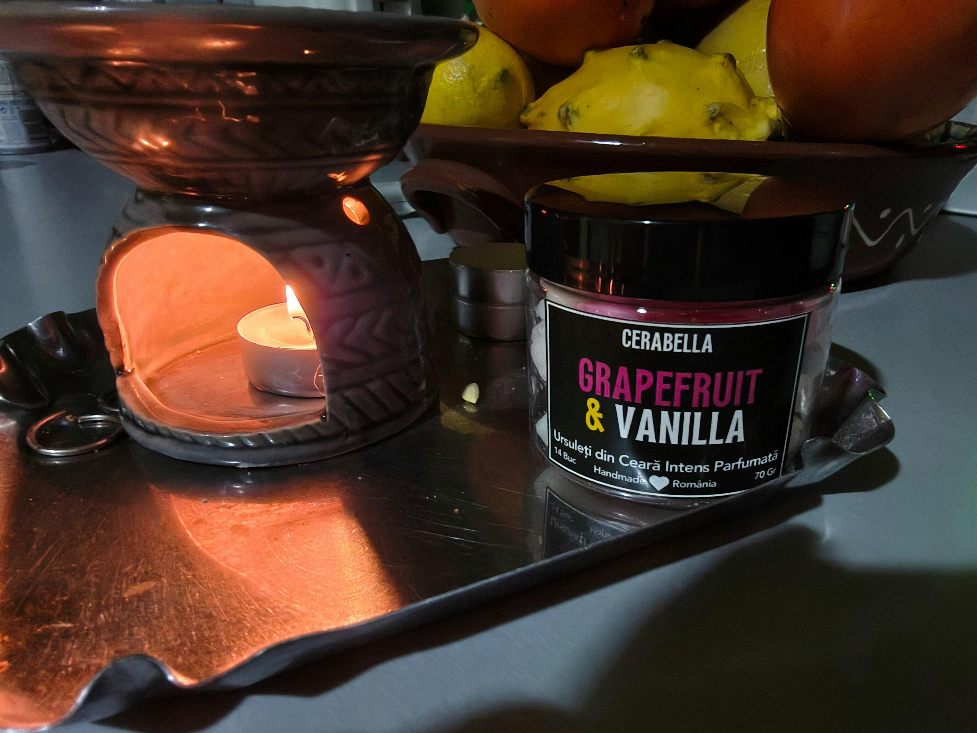 Grapefruit și Vanilie. Un parfum vibrant și delicat, care îți trezește simțurile cu o explozie de grapefruit roz, mandarină, lime și lămâie. Prospețimea citrică este ușor îmblânzită de un strop de mentă, înainte de a se transforma într-un buchet floral compus din iasomie, gardenie și crin. La final, aromele se topesc într-o bază cremoasă de vanilie dulce, creând o experiență olfactivă perfect echilibrată între prospețime și rafinament.