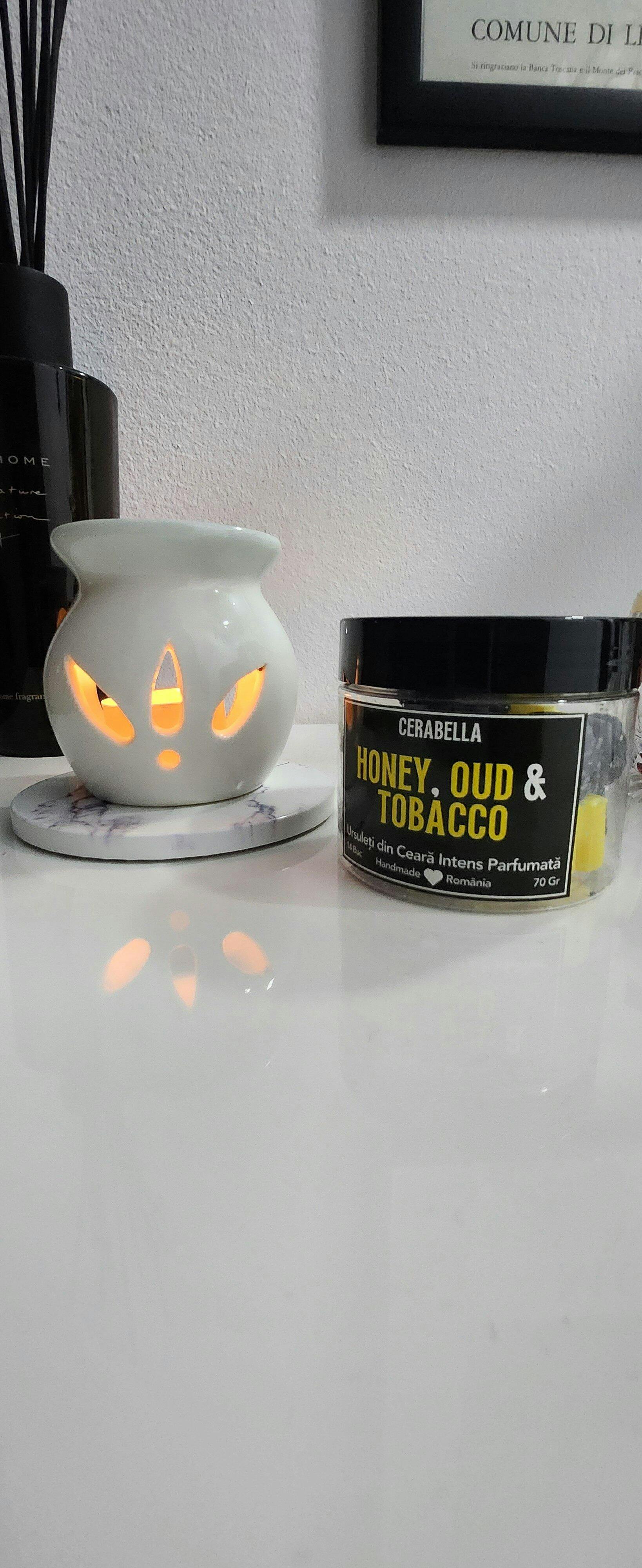 Miere, Oud și Tutun. Un parfum cald și opulent care evocă atmosfera unui foc trosnind într-o seară rece de iarnă. Aroma afumată de tutun, îndulcită de miere și încălzită de un strop de condimente, te atrage într-o experiență olfactivă unică. Notele bogate de lemn, santal și oud conferă profunzime și eleganță, în timp ce baza catifelată de ambră, boabe de tonka și paciuli este îmbrățișată de mierea ușor condimentată, adăugând o notă de mister seducător.