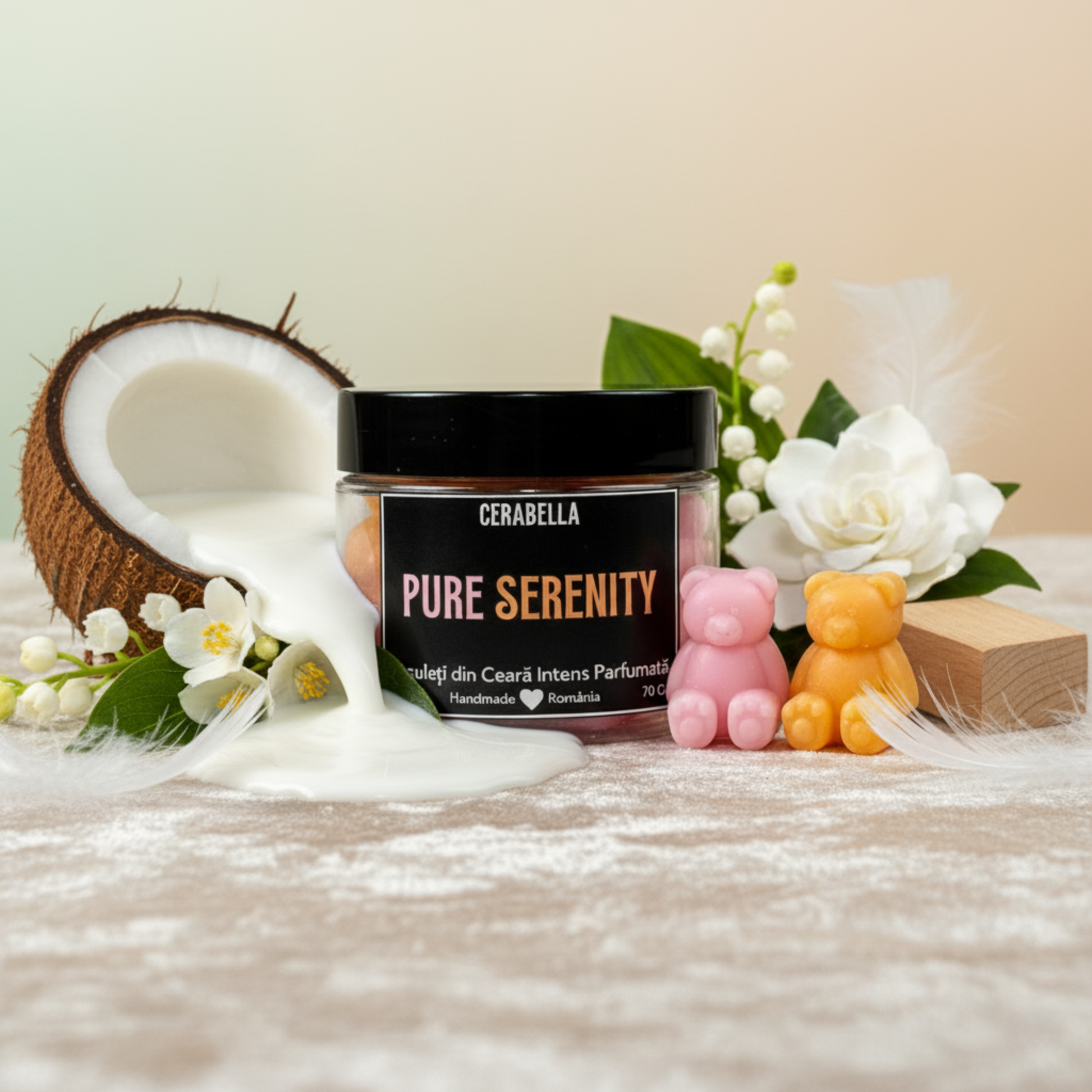 Serenitate Pură. Un parfum delicat ce te cucerește din prima clipă, învăluindu-te într-o stare de calm și liniște interioară. Debutul verde, cu frunze de smochin și accente luminoase, aduce prospețimea unei emoții noi. Inima catifelată, cu lapte de cocos, note pudrate și flori albe, transmite tandrețe și o frumusețe subtilă, greu de uitat. Finalul cald și liniștitor, cu lemn de cedru și mosc catifelat, adaugă profunzime și echilibru – lăsând în urmă un parfum romantic, suav și memorabil.