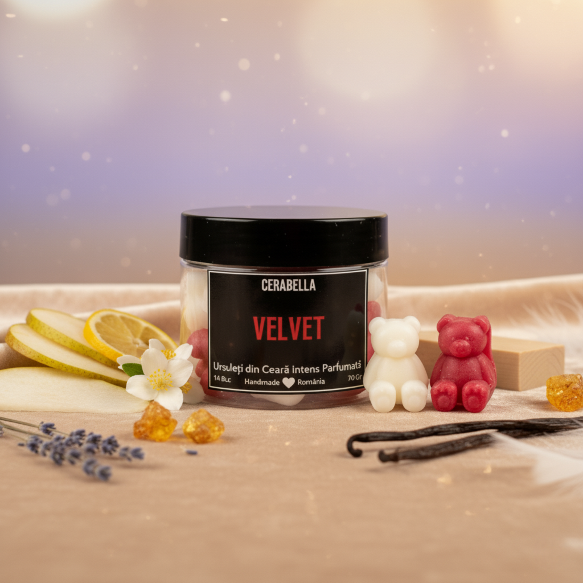 Îți sugerăm să începi cu un singur ursuleț de ceară; poți adăuga doi ursuleți pentru o acoperire mai eficientă și un parfum mai intens.